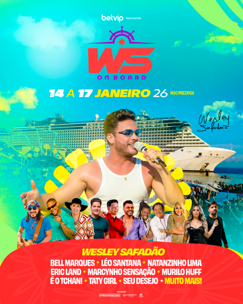 O Navio WS On Board está de volta! Depois do sucesso do seu navio nos Estados Unidos, chegou a vez de Wesley Safadão trazer o navio WS On Board pela primeira vez ao Brasil!