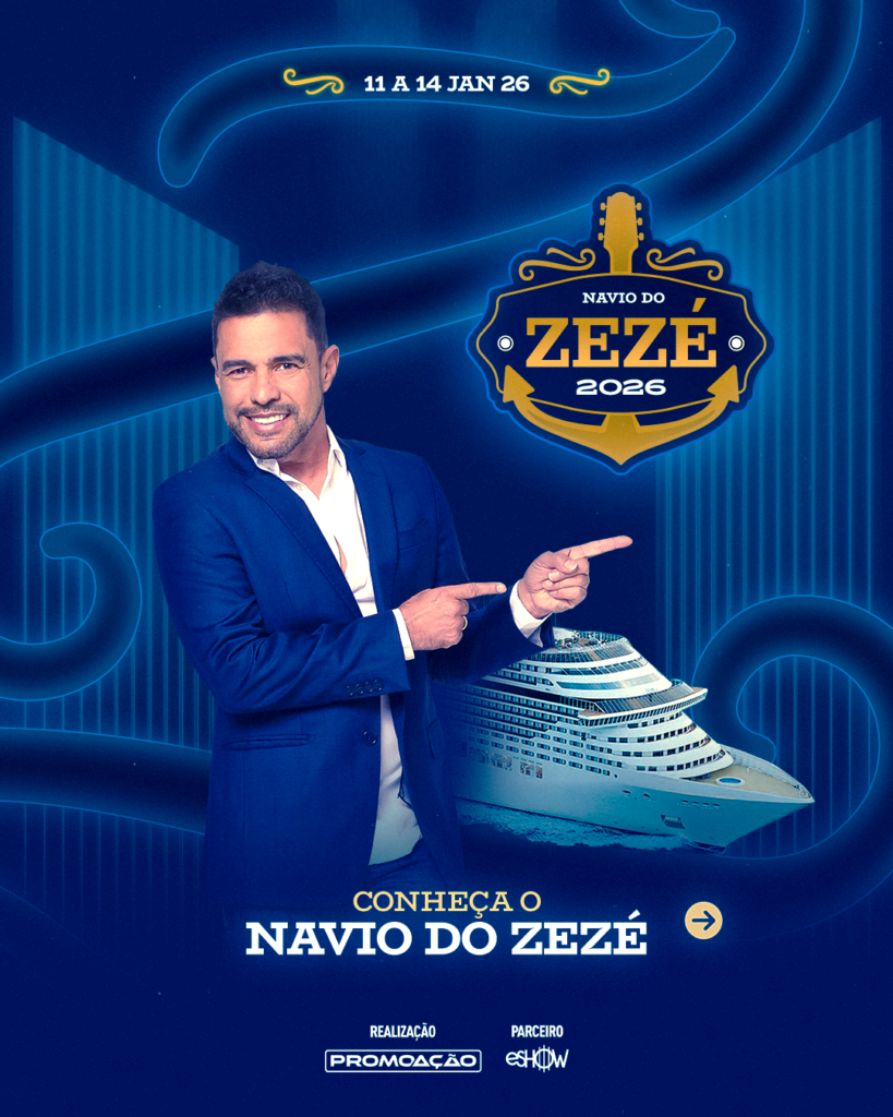De 11/Janeiro a 14/Janeiro, o Navio do Zezé promete dias inesquecíveis em alto mar com novas atrações e muitas novidades a bordo do luxuoso navio MSC PREZIOSA.