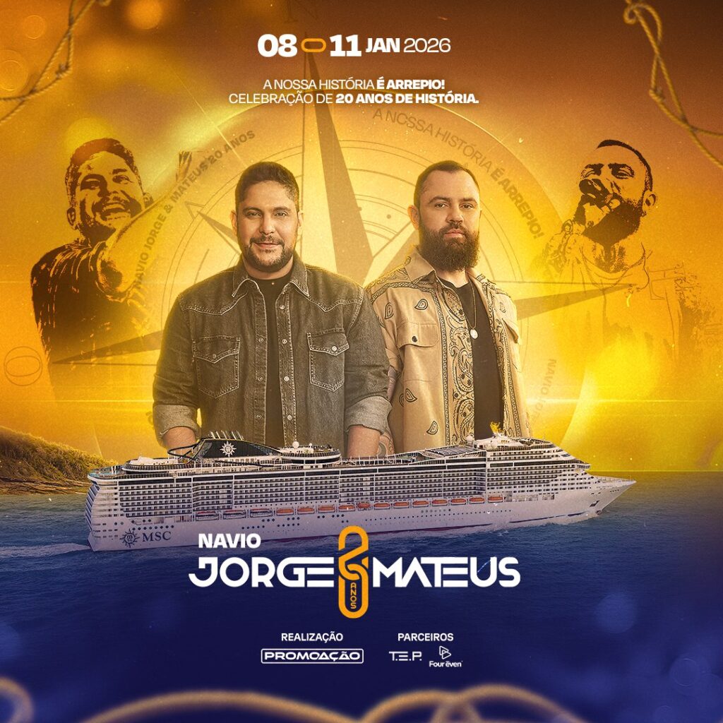 O Navio Jorge & Mateus tá chegando com tudo! Uma viagem inesquecível ao som de hits que marcaram gerações, muita festa e aquela vibe única que só Jorge & Mateus sabem entregar!