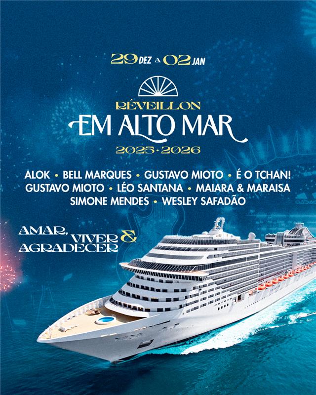 – Navio Réveillon em Alto Mar – 29/Dezembro/25 a 02/Janeiro/26
