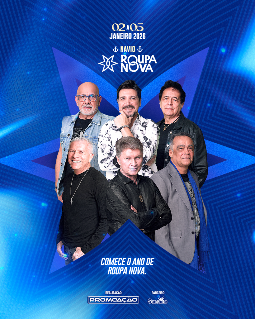 O Navio Roupa Nova acontecerá do dia 02/Janeiro/26 a 05/Janeiro/26 e os fãs e admiradores curtirão o melhor da música dos anos 80’s, 90’s e 00’s com shows que conquistarão o público. O line-up será divulgado logo logo e assim que tivermos informações, atualizaremos esse artigo.